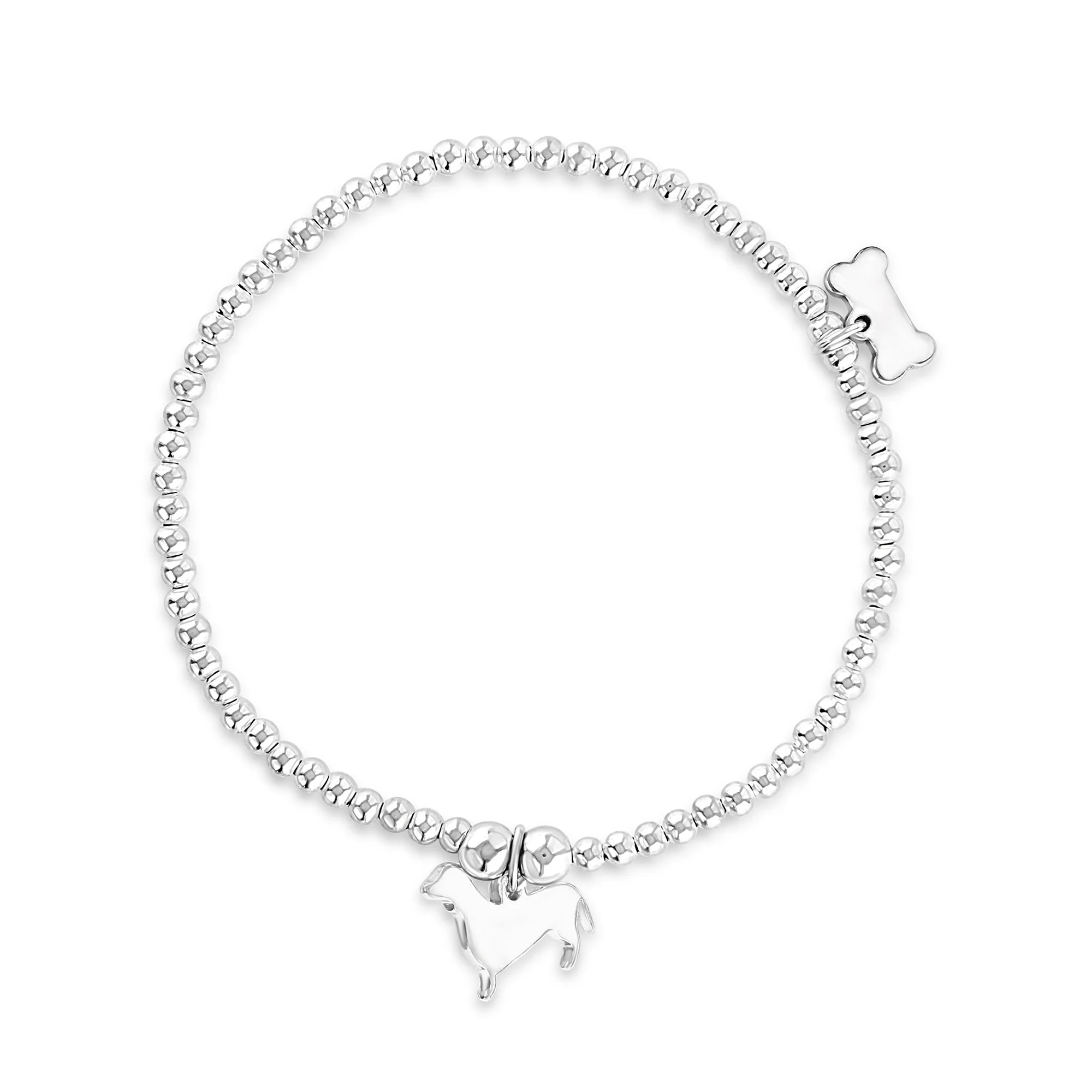 Dachshund Silhouette Silver Ball Bead Bracelet - Personalised