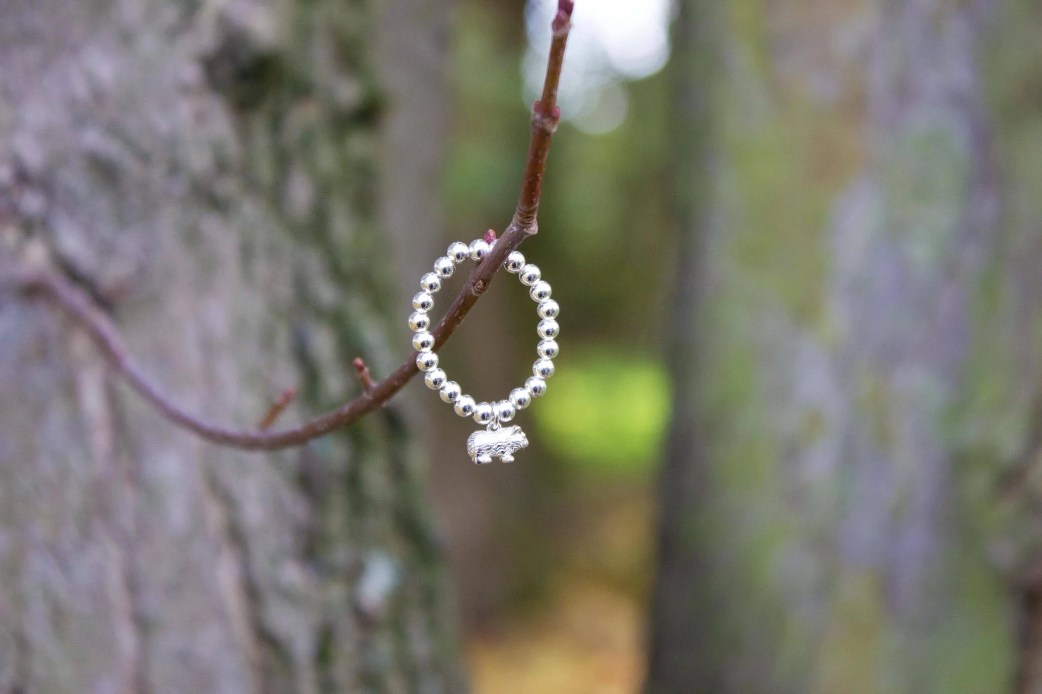Sterling Silver Ball Bead Ring With Guinea Pig Charm